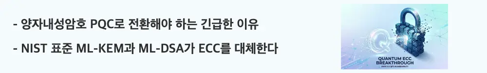 🔗 양자내성암호(PQC)의 구체적인 알고리즘 원리와 기업 도입 방법에 대해서는 포스트 양자암호 완전 가이드: NIST 표준 ML-KEM부터 기업 도입까지에서 상세히 다루고 있으니 함께 읽어보시기 바랍니다.